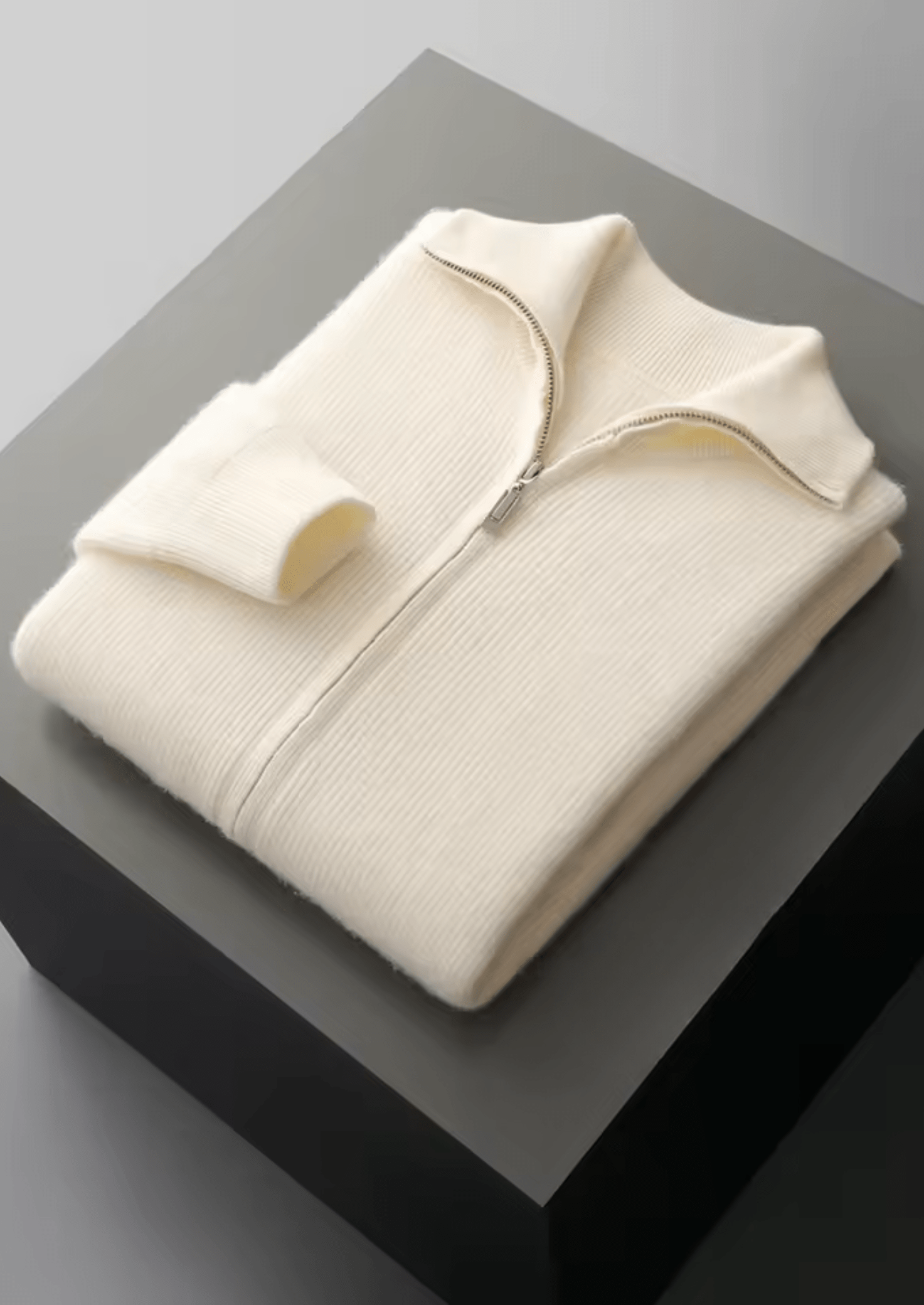 WOOL RIBBED ZIPPER CARDIGAN